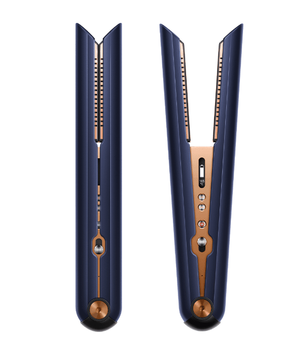 La alaciadora Dyson Corrale™ (Azul Prusia/Cobre): se puede usar con o sin cable, reduce el daño a la mitad¹; incluye 3 accesorios. Precio especial $11,699 MXN (antes $12,999 MXN) → ahorro de $1,300 MXN.